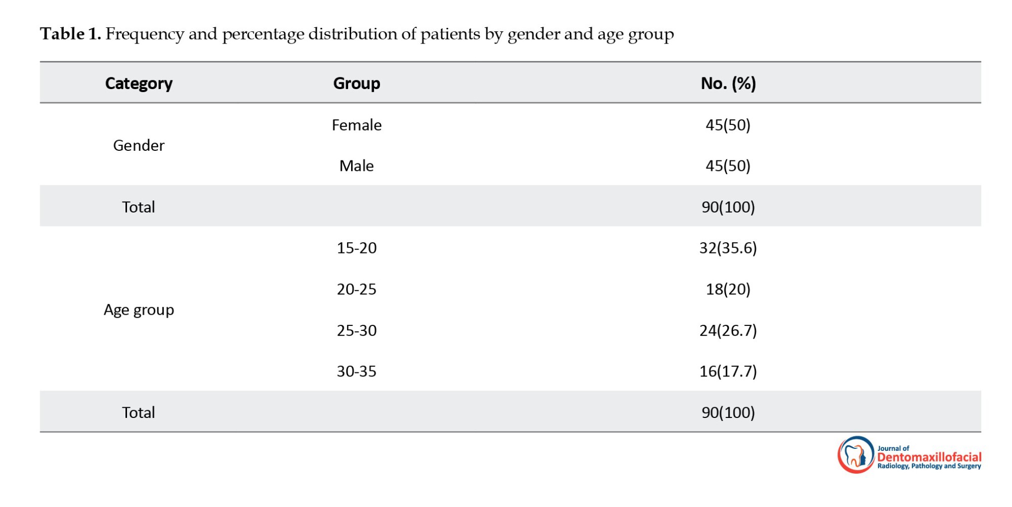 Based on the obtained results from Table 1, the number of participants in the study was equal in terms of gender. Moreover, the highest frequency is observed in the 15–20-year age group, comprising 32 individuals (35.6%), while the lowest frequency is found in the 30–35-year age group, with 16 individuals (17.7%).